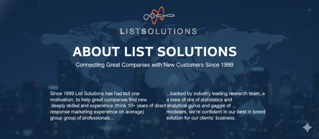 I would highly recommend List Solutions to any business who is trying to broaden their reach and customer base. They have been a reliable source with our mailing campaigns and we have been very pleased with our results. The personal attention received on every inquiry is remarkable and the response time is astounding.”
